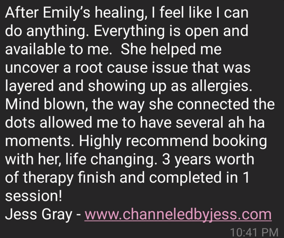 Please fill out the form, using the link below, telling me the biggest blocks or issues you are currently experiencing. I will then tap into your energy to let you know what is creating them and any other other messages that come through from your higher self!